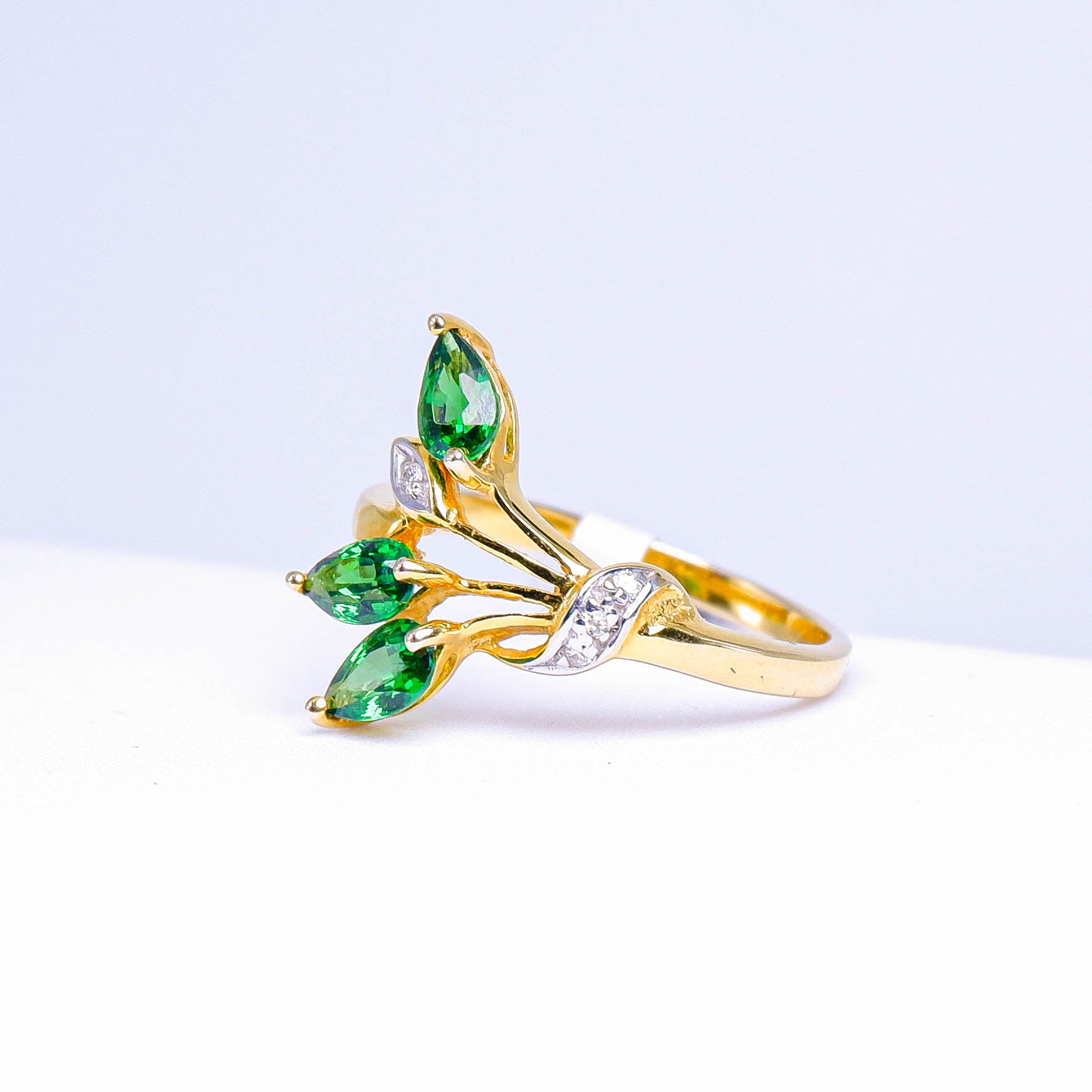 แหวนทอง9K ฝังพลอย ซาโวไรท์ (Tsavorite) + เพชร (Diamond)
